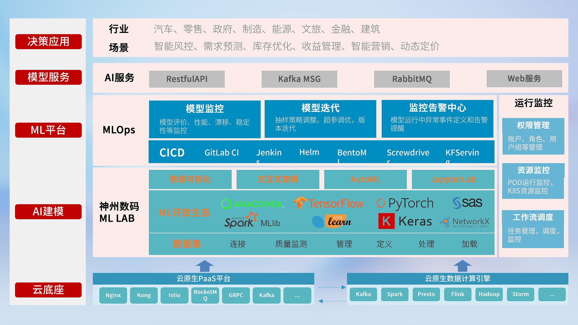 数据+模型双引擎驱动,,面向智能服务场景,,,,快速灵活利用AI技术,,,,支持业务决策,,助力企业智能化转型破局。。。